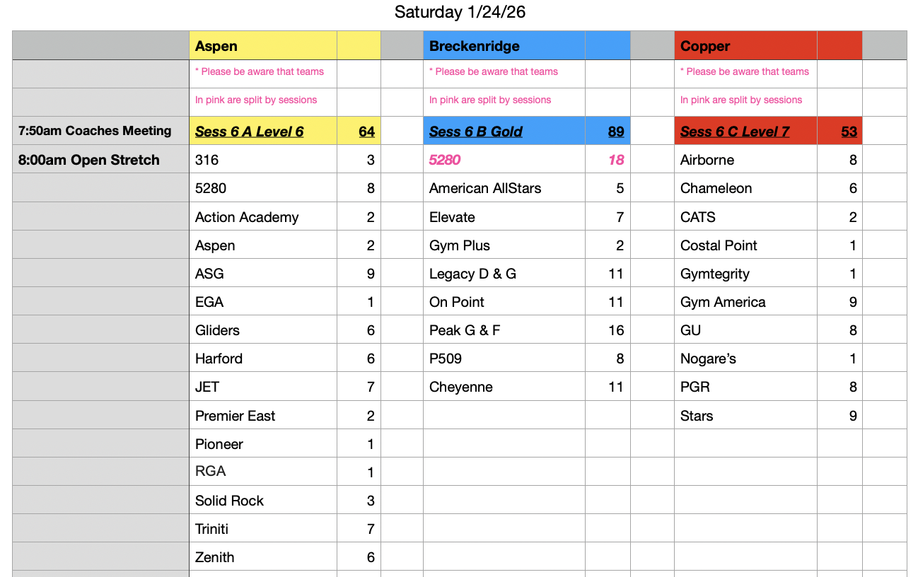 Aspen is yellow, Breckenridge is blue, Copper is red